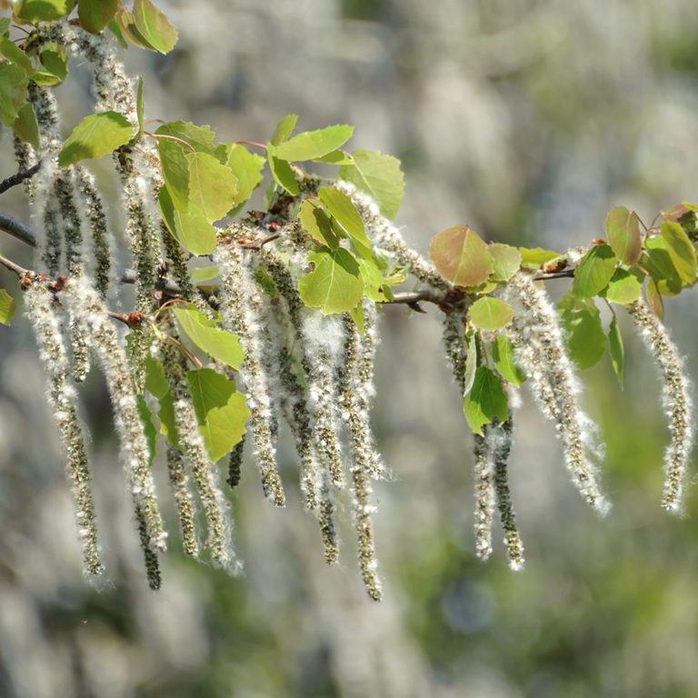 Mit einer Höhe von 15 bis 25 Metern – in Ausnahmefällen sogar bis 35 Meter – ist die Zitterpappel ein mittelgroßer, rasch wachsender Baum. Ihre lockere, rundliche Krone und der schlanke Stamm verleihen ihr eine elegante Erscheinung. Junge Bäume tragen eine glatte, graugrüne Rinde, die im Alter dunkler wird und längsrissig aufbricht. Besonders charakteristisch sind ihre rundlichen bis herzförmigen Blätter mit seitlich abgeflachtem Stiel: Sie reagieren selbst auf die kleinste Brise und beginnen zu „zittern“. Im Frühjahr, noch vor dem Blattaustrieb, erscheinen die Blüten – männliche purpurfarbene und weibliche grünliche Kätzchen. Aus ihnen entwickeln sich kleine Kapselfrüchte, deren watteartige Samen der Wind weit verbreitet.