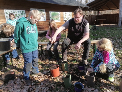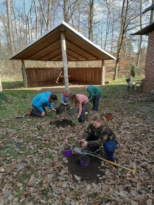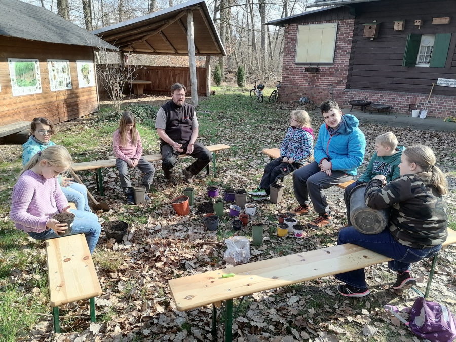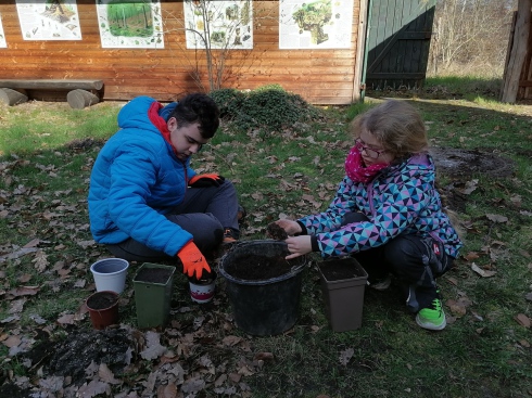 Die in Pflanztöpfe eingesäten Eicheln wurden abschließend von den Waldfüchsen mit nach Hause genommen. Dort übernehmen die Waldfüchse mit ihren Familien die Anzucht der Setzlinge, die wir zusammen im kommenden Herbst rund um die Rudolphsruh pflanzen möchten.